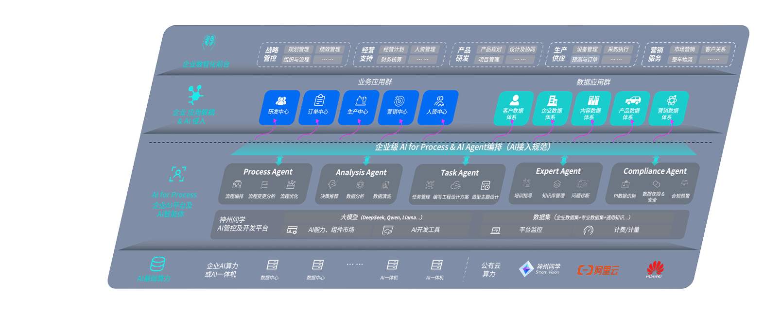 端到端的一站式AI工作空间深度融合了从企业战略规划到日常经营的全流程业务板块,,,,定向解决车企内部领域多、、、部门多、、链条长、、、、场景碎片化等难题,,,支持车企快速构建以AI为核心的生产力写作体系,,,,实现任务执行与AI能力的无缝集成与交互